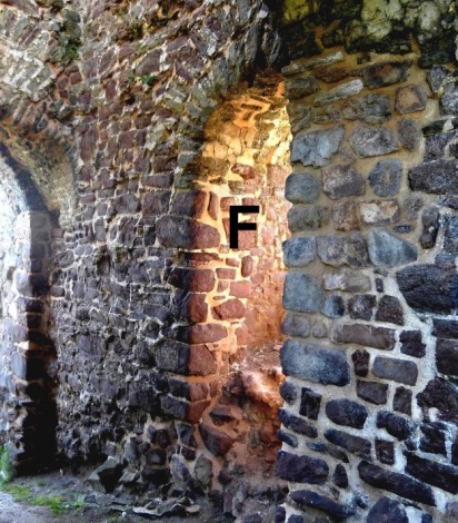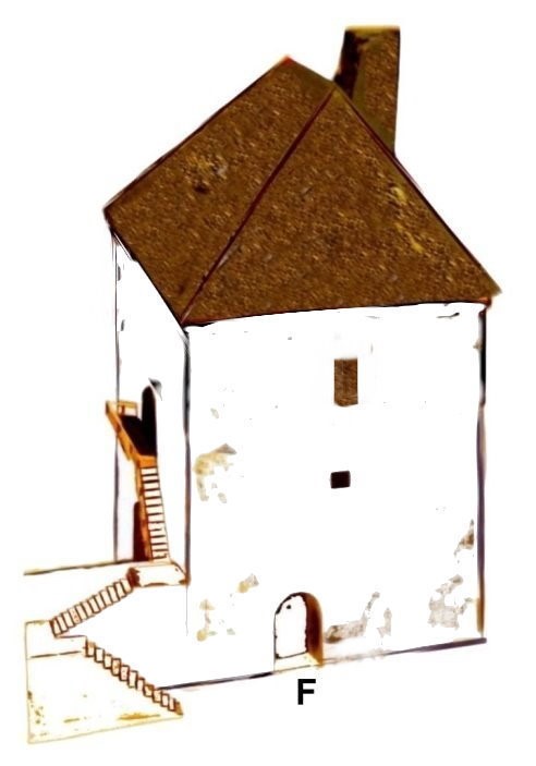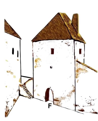 Durch die Pforte (F) im Tordurchgang erreicht man den für die Verteidigung vorgesehenen Abschnitt.