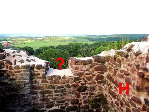 Ausgebrochene Steine im Mauerverband hervorgerufen durch Wurzelwerk verursachten den Maueraufbruch (?), der dann als Fenster erkannt werden wollte. Im Urzustand handelte es sich eher um eine Lichtnische oder wie auf der Westseite um einen lang gezogen Lichtschacht (H).